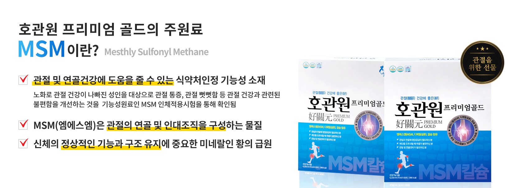 ‘호관원 프리미엄 골드’는 관절에 좋은 MSM을