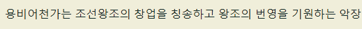 용비어천가는 조선왕조의 창업을 칭송하고 왕조의 번영을 기원하는 악장이었습니다.